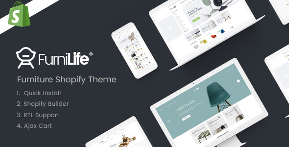 Furnilife – Furniture Shopify Theme is a lightweight, modern and 100% responsive Shopify theme. This Shopify theme is a simple and clean layout with elegant design, very easy to install and to use. It will be adjusted automatically any type of devices or screen sizes. No matter you can apply this theme as your liking. This eCommerce theme is well set for furniture, flower, clothing, accessories, cookery, fashion, high fashion, men fashion, women fashion, digital, kids, watches, shoes, jewelries, sports and so on.